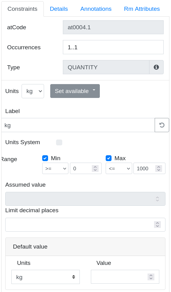 Pas de velden aan waar nodig. Stel de eenheden zo in dat deze alleen met gangbare eenheden werken. Stel eventueel minima en maxima in.